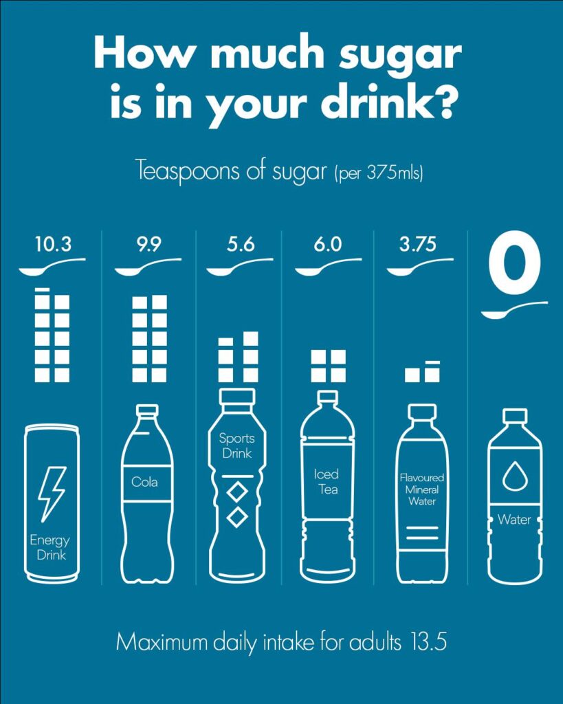 How much sugar is in your drink, you will be surprised. During the summer months, hydration is even more important and water is the real winner.